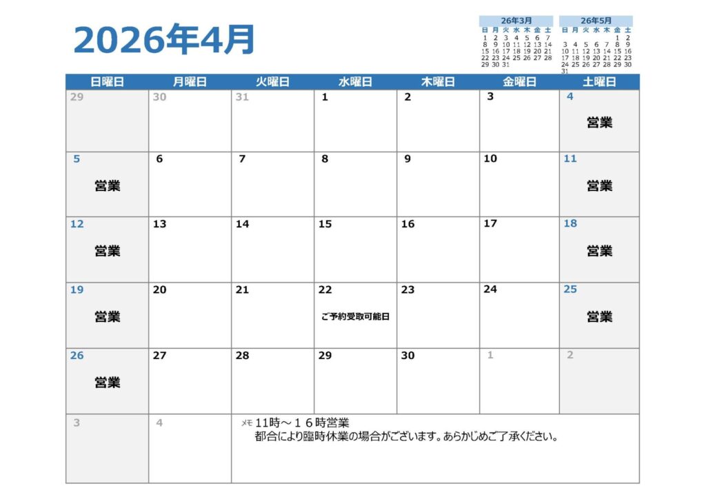 4月営業カレンダー
